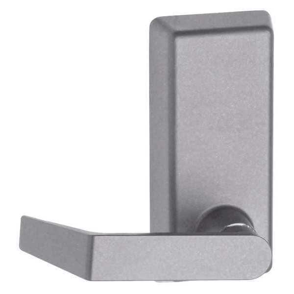 Lever, Mechanical Exit Device Trim, Heavy Duty, Door Handing Right Hand Reversible, 22 Series, Fire Rated No, Color Silver, Sprayed Aluminum Finish, Fits Stile Width 4 3/8 in, For Door Thickness 1 3/4 in, Application Exterior Trim for Exit Device, Passage, Overall Length 6 1/2 in, Overall Width 3 in, Grade 1, Standards ANSI, ADA Compliant Yes, Style Rhodes, Features ANSI Function 14