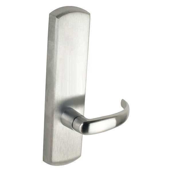 Lever, Mechanical Exit Device Trim, Heavy Duty, Door Handing Right Hand Reversible, 98/99 Series, Fire Rated No, Color Silver, Satin Chrome Finish, Fits Stile Width 4 3/4 in, For Door Thickness 1 3/4 in, Application Exterior Trim for Rim and Vertical Rod Exit Device, Passage, Overall Length 10 3/4 in, Overall Width 2 3/4 in, Grade 1, Standards ANSI, ADA Compliant No, Style Sparta, Features Always Operable, No Cylinder, ANSI Function 08