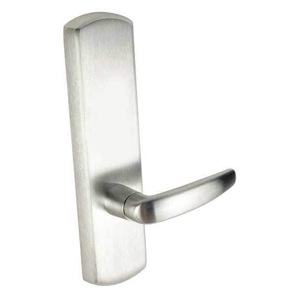 Lever, Mechanical Exit Device Trim, Heavy Duty, Door Handing Right Hand Reversible, 98/99 Series, Fire Rated No, Color Silver, Satin Chrome Finish, Fits Stile Width 4 3/4 in, For Door Thickness 1 3/4 in, Application Exterior Trim for Rim and Vertical Rod Exit Device, Passage, Overall Length 10 3/4 in, Overall Width 2 3/4 in, Grade 1, Standards ANSI, ADA Compliant No, Style Tubular, Features Always Operable, No Cylinder, ANSI Function 08