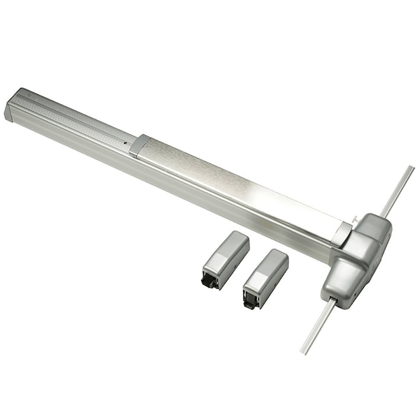 Grade 1 Surface Vertical Rod Exit Bar, Wide Stile Pushpad, 36" Panic Device, 84" Door Height, Exit Only, Less trim, Less Bottom Rod, Motorized Latch Retraction, Less Dogging, Satin Chrome Finish, Field Reversible