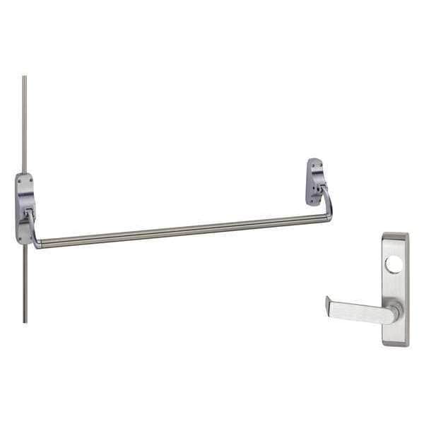 Surface Vertical Rod, Surface Vertical Rod, Hex Key Dogging, Heavy Duty Performance, Mechanical, Grade 1, Satin Chrome Finish, Door Width 44 in, Series 88, Door Height 84 in, Fits Stile Width 2 1/2 in, For Door Thickness 1 3/4 in, Door Handing Left Hand Reversible, Yes, No, Standards ANSI/UL 305, CAN/ULC-S132, Outside Trim Type Lever