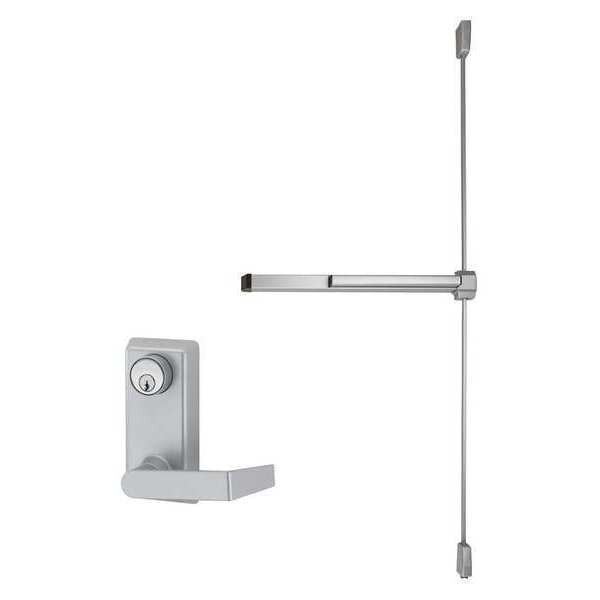 Surface Vertical Rod, Surface Vertical Rod, Hex Key Dogging, Medium Duty Performance, Mechanical, Grade 1, Aluminum Finish, Door Width 48 in, Series 22, Door Height 84 in, Fits Stile Width 3 5/8 in, For Door Thickness 1 3/4 in, Door Handing Non-Handed, Yes, No, Standards ANSI/UL 305, CAN/ULC-S132, Outside Trim Type Lever, Lockset Function Healthcare Facilities, Commercial Buildings, Multi-Family, Retail Stores
