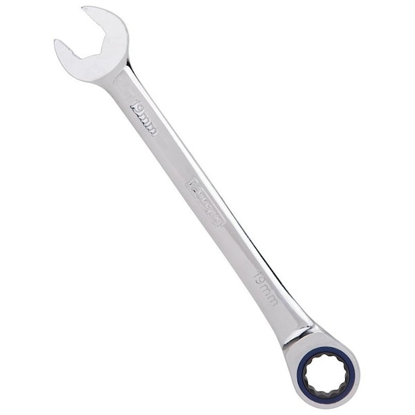 Combination Wrench, Metric, 19 mm Head, Chrome Vanadium Steel, Polished Mirror
