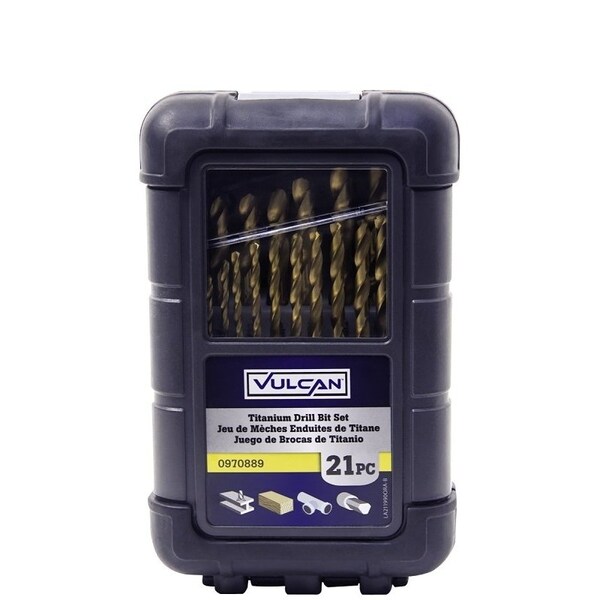 Drill Bit Set, 21-Piece, High Speed Steel/Titanium Nitride, Bright Yellow