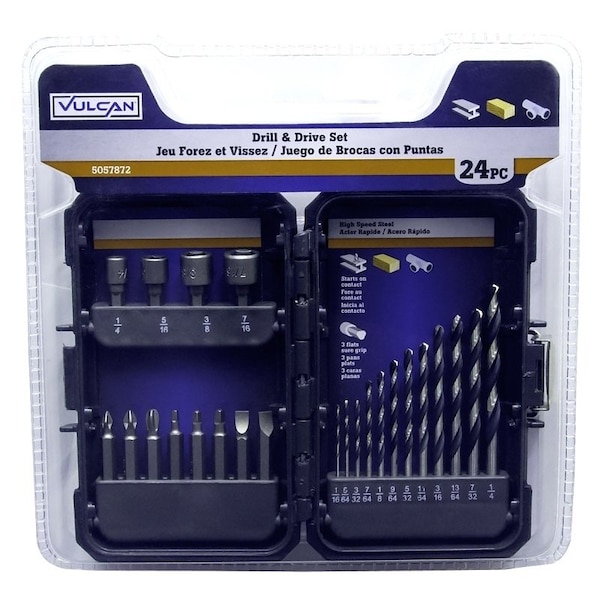 Drill Bit Set, 24-Piece, S2 Steel, Chrome Molybdenum/Satin