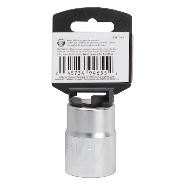 Drive Socket, 1-1/16 in Socket, 3/4 in Drive, 12-Point, Chrome Vanadium Steel, Chrome