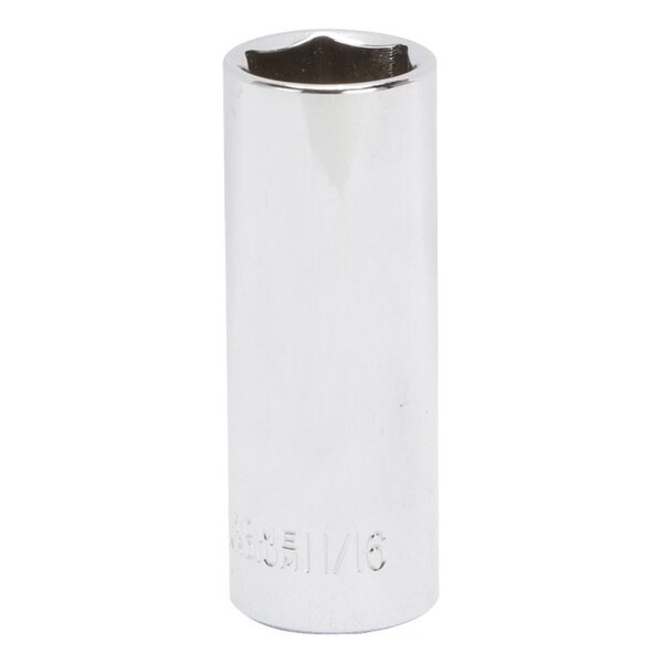 Drive Socket, 11/16 in Socket, 3/8 in Drive, 6-Point, Chrome Vanadium Steel, Chrome, MT6495774