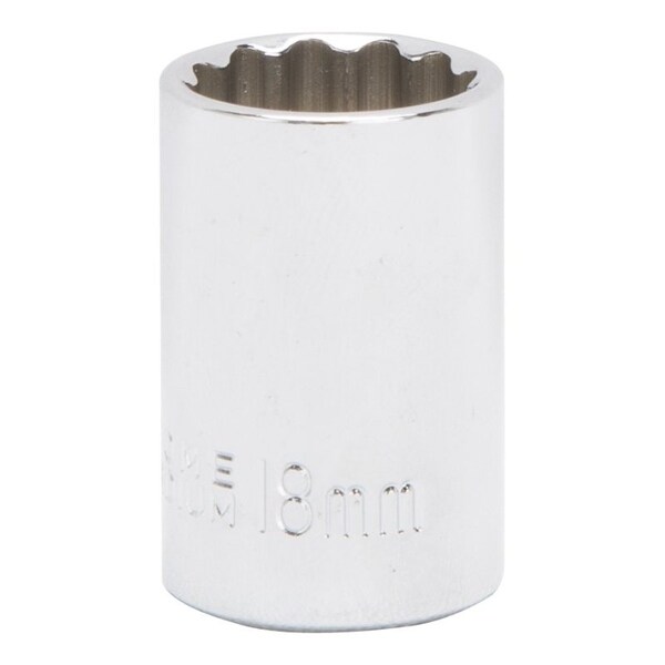 Drive Socket, 18 mm Socket, 1/2 in Drive, 12-Point, Chrome Vanadium Steel, Chrome, MT6529952