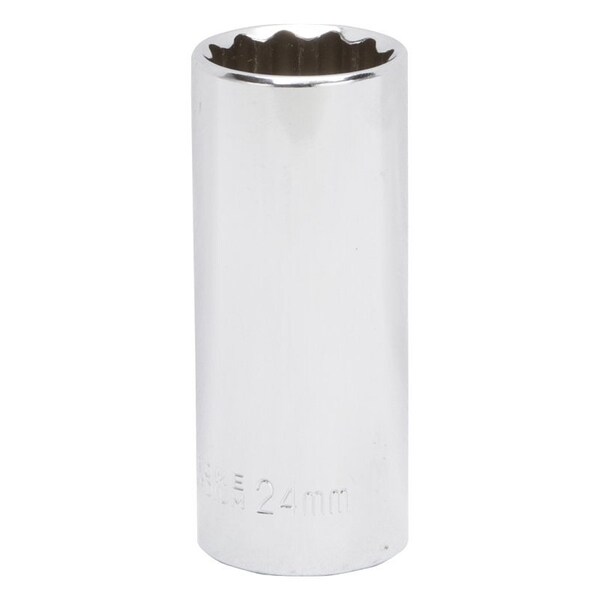 Drive Socket, 24 mm Socket, 1/2 in Drive, 12-Point, Chrome Vanadium Steel, Chrome, MT6528985