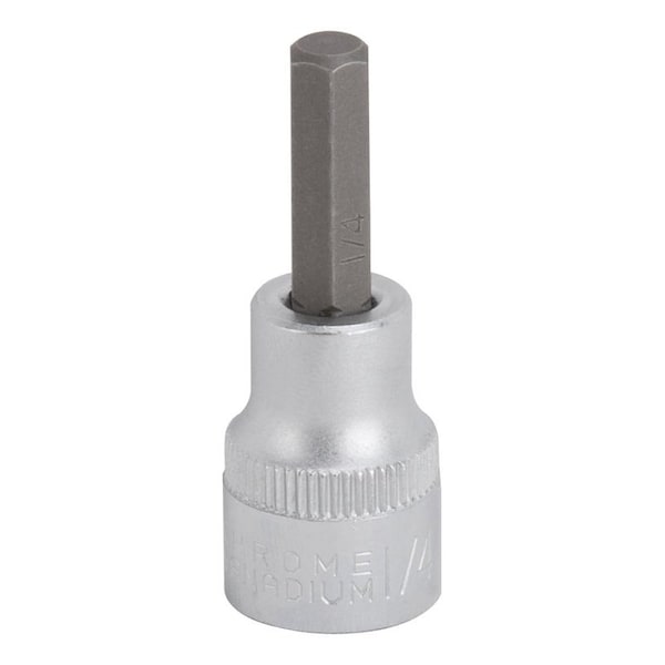 Fractional Hex Bit Socket, Chrome, 1/4 in, 3/8 in Drive, 1-7/8 in OAL