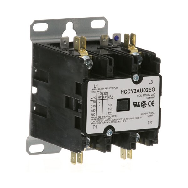 Hartland Contactor;2 Pole ;208/240 Volt;30 Amp Inductive;40 Amp Resistive;10-32 Screw Combo With Quick Connector
