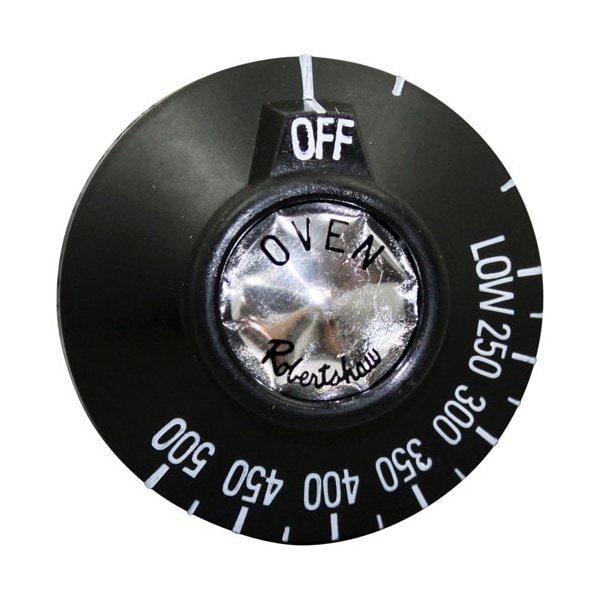 Knob-Bj Oven Fixed Dial, Black, Off 500°-Low, 2-3/8" Dia,;9/16" Protrusion - Notch Up. ;;Fits Vulcan Hart Models~;;V24, V260, V36, V36F, V60, V60F, W24, W260, W36, W36F, W60,;W60F