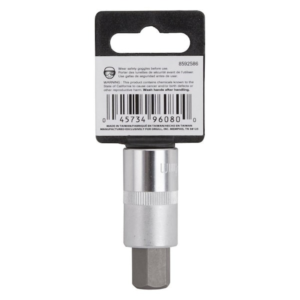 Hex Bit Socket, Chrome, 14 mm, 1/2 in Drive, 2-1/2 in OAL