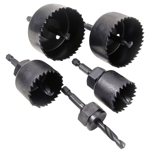 Includes 4 high carbon steel hole saws 114 in, 112 in, 2 in, 218 in, and 1 mandrel with pilot drill bit
