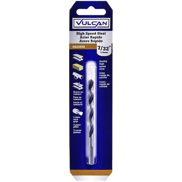 Jobber Drill Bit, 7/32 in Dia, 3-3/4 in OAL, 3-Flat Shank