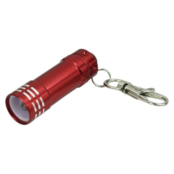 The Vulcan LED flashlight key chain is made of aluminum. The snap key ring is included.