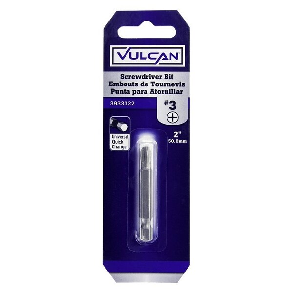 Vulcan Screwdriver Bit, Hex Shank, S2 Chrome Molybdenum Steel, Chrome