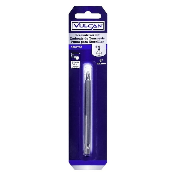 Vulcan Screwdriver Bit, Hex Shank, S2 Chrome Molybdenum Steel, Chrome