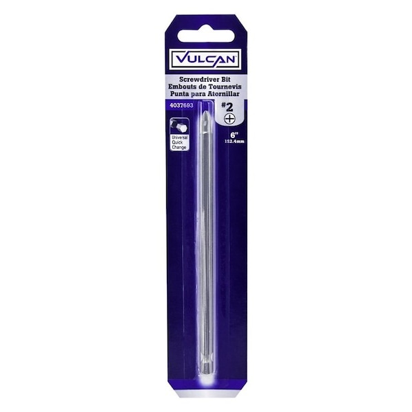 Vulcan Screwdriver Bit, Hex Shank, S2 Chrome Molybdenum Steel, Chrome