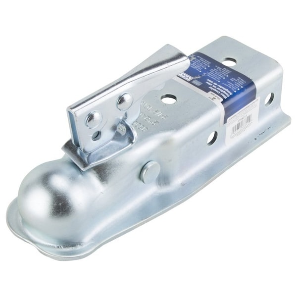 Vulcan Trailer Coupler, 3500 lb Towing, 2 in Trailer Ball, 212 in Channel Width, Lock Hole 134 mm, Lever Latch, Steel, Zinc, Silver