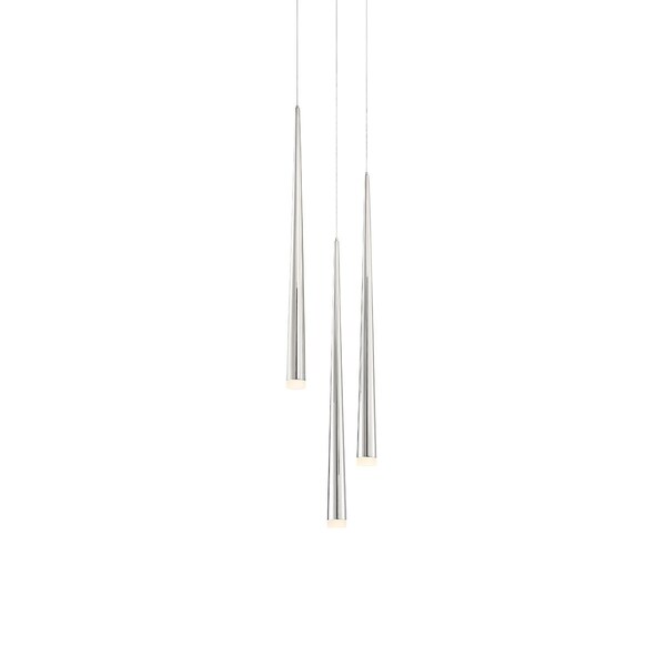 Cascade Led 3 Light Etched Glass Round Chandelier 3500K In Polished Nickel