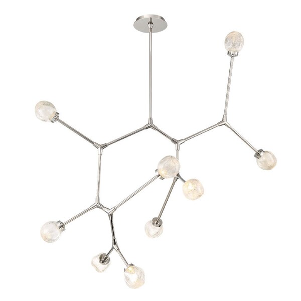 Art is often seen as a catalyst for observing life in a different light. Such is the case for the Catalyst Chandelier by Modern Forms, which provides a unique display of tripodic Polished Nickels frames that are capped at each end by mouth-blown, free-formed, artisan glass shades. Never mind the organic, almost cellular lighting effect this piece has against a nearby wall or ceiling, courtesy of a series of integrated LEDs. Mounted individually or grouped to create larger chandeliers for ballrooms, lobbies and large living areas. This luxurious, modern adjustable luminaire in polished nickel is offered in three sizes with 8 light, 9 light, 10 light configurations.