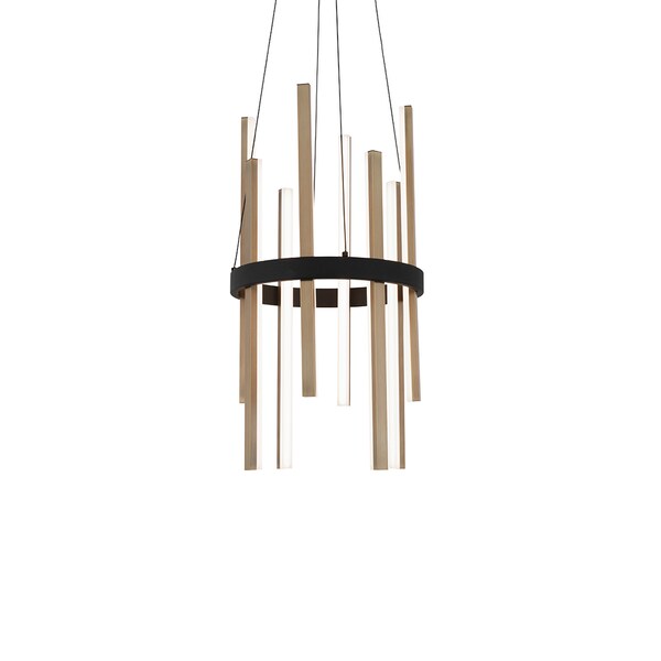 Like a dynamic instrument of musical chimes. Harmonix plays to the rhythm of light. Beautiful playful light. A two tone finish features black with aged brass.