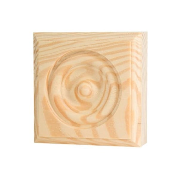 375 x 375 x 075, Rosette Trim Pine Block Moulding, Use With Moulding Up To 312, Easy To Install, No Mitering Necessary, Trim Around Doors, Windows Openings