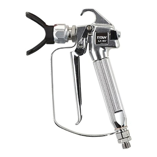 Tungsten carbide ball valve, seat and stainless steel swivel insures long life and durability. In-handle filter reduces clogging and increases tip life. Swivel reduces hose kinks and assures effortless control. 4 finger spray trigger. Includes 517 SC-6 reversible tip and tip guard. Made of all metal construction.