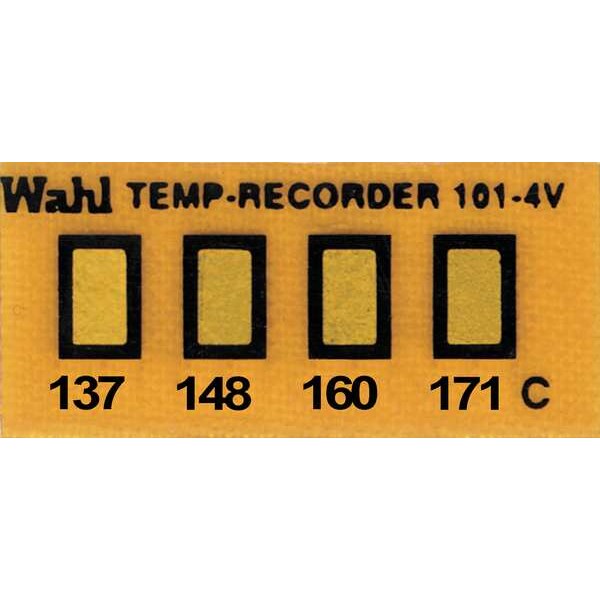 Non-Reversible Temp Indicator, General Purpose Non-Reversible Multi-Point, Number of Points 4, 137 Degrees C, 148 Degrees C, 160 Degrees C, 171 Degrees C, Horizontal, Pack Quantity 10, 3/8 in x 13/16 in, Kapton, Strip, Package Quantity 10