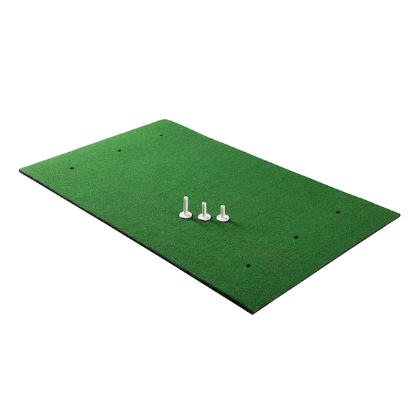 Golf Hitting Mat - 5x3-Foot Artificial Turf with 3 Rubber Tees and 6 Teeing Positions by