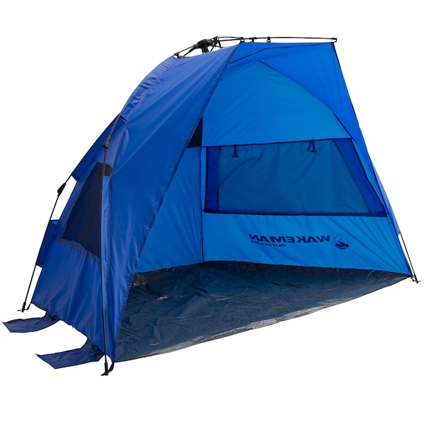 Make your outdoor adventure a memorable one by bringing along the Beach Tent by Wakeman. This pop-up shelter boasts a UV protection rating of UPF 50+, offers mesh windows for optimal ventilation, and features water-repellent material. The convenient interior storage pocket can easily hold your outing accessories like sunscreen, sunglasses, towels, and more, while the carrying case makes storage and transport a breeze. With instant set up that takes just seconds, this baby beach tent eliminates the hassle of set up and keeps your time spent experiencing the outdoors. IMPORTANT: Wakeman committed to providing the consumer with the absolute best price and value on all of our products.NOTE: This is an exclusive product of Wakeman and ONLY Pop-Up Tents by Wakeman. Avoid buying counterfeit products and transacting with unauthorized sellers. Wakeman a registered trademark protected by U.S. Trademark law and will be vigorously defended.