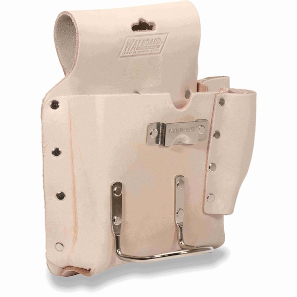 The WAL-BOARD TOOLS Left-Handed Tool Pouch is made of heavy-duty polished grain leather reinforced with rivets. This Tool Pouch has three inner pockets for small tools and a steel hammer loop. This quality tool pouch is comfortable and perfect for your everyday storage of tools while working.