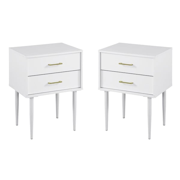 Walker Edison 20 in. Two-Drawer Nightstand, Solid White - 2 Piece