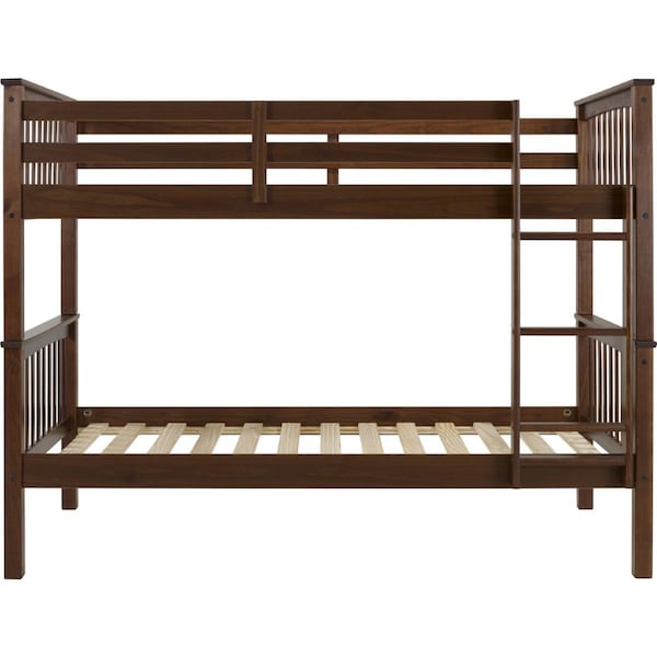 Walker Edison Furniture Solid Pine Wood Twin Over Twin Bunk Bed, Walnut