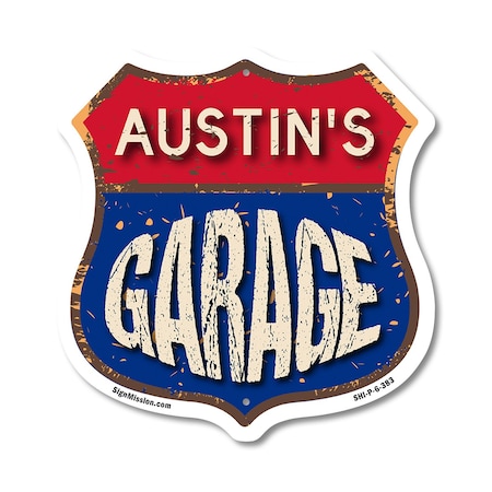 Austin's Garage, 6 Inch X 6 Inch, Plastic Sign