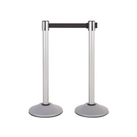 Retractable Belt Barrier, 40" Black Post, 7-1/2' Black Belt