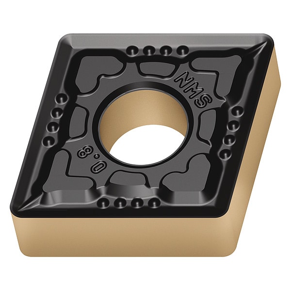 Diamond Turning Insert, Chip-Breaker Code NMS, Inscribed Circle 1/2 in, TiAlN+Al2O3+ZrN, ANSI Code CNMG431-NMS WSM10, Clearance Angle 0 Degrees