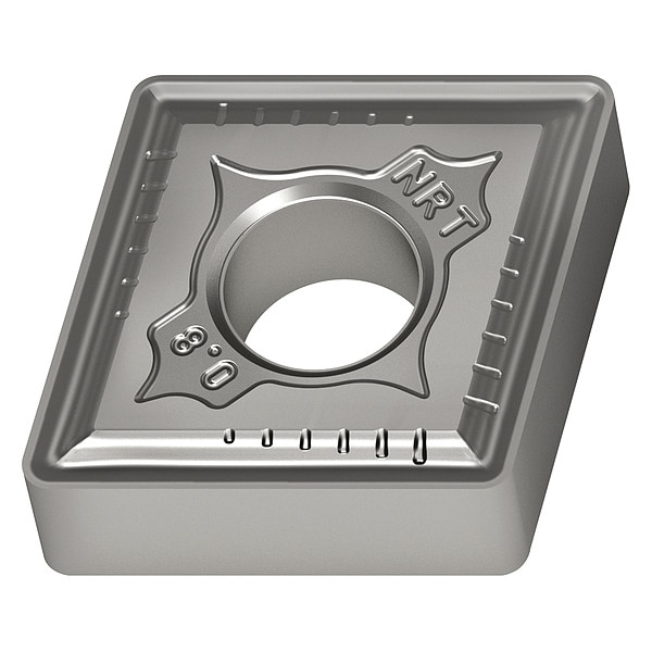 Diamond Turning Insert, Chip-Breaker Code NRT, Inscribed Circle 1/2 in, Bright (Uncoated), ANSI Code CNMG432-NRT WS10, Clearance Angle 0 Degrees