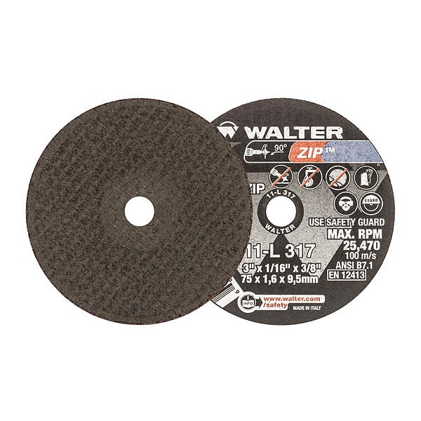 Abrasive Cut-Off Wheel, Type 1, 3 in Dia, 0.0625 in Thick, 3/8 in Arbor Hole Size, ZIP(TM) Series