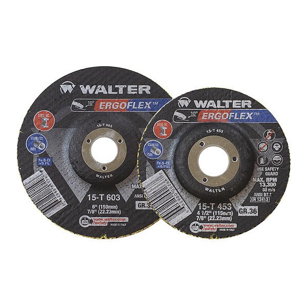 Grinding Wheel T29, 4.5"x7/8", 36g, Type 27, 6.29 in Dia, 0.27 in Thick