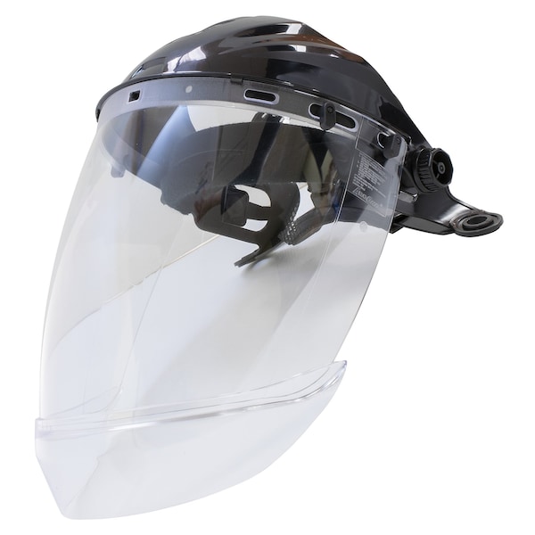Medium browguard with injection moulded polycarbonate visor and removable chin guard. Chin guard provides additional protection against sparks & spatter. Browguard is compatible with small (12 in) and medium (15 1⁄2 in) visors.