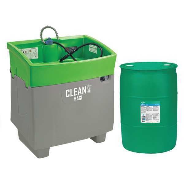 Parts Washer, For Solution Base Type Water-Based, Cleaning Method Flush, Manual, Tank Material Plastic, Tank Capacity 36 gal, Maximum Fluid Level 10 in, Load Capacity 551 lb, Tank Overall Width 18 1/4 in, Tank Overall Depth 24 in, Tank Overall Height 29 3/8 in, Minimum Operating Temperature 41 Degrees F, Maximum Operating Temperature 104 Degrees F, Voltage 120V, Standards CSA Certified, Cleaning Solution Included 55 gal Drum CB 100 ALU, Compatible Solution Manufacturer Model Number CB 100