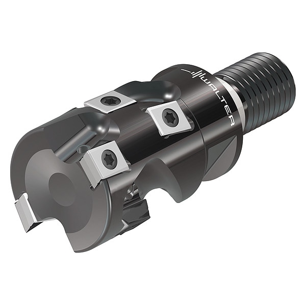 Indexable Square Shoulder End Mill, Max. Cutting Dia. 1 13/50 in, Shank Dia. 1.1020 in, Screw On, Overall Length 3.1100 In., ANSI Code F5038.T28.032.Z02.32, Connection Size T28, Coolant Fed Coolant Through