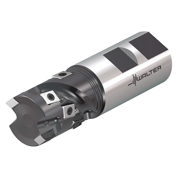 Indexable Square Shoulder End Mill, Max. Cutting Dia. 1 13/50 in, Shank Dia. 1.2600 in, Weldon Flat, Overall Length 4.3700 In., ANSI Code F5038.W32.032.Z02.40, Coolant Fed Coolant Through
