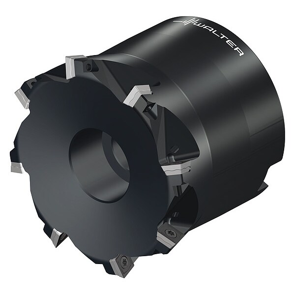 Indexable Face Mill, Max. Cutting Dia. 2-1/2 in, Arbor Dia. 1 in, Depth of Cut 0.0390 in, ANSI Code M4002.064-B26-08-01, Coolant Fed Coolant Through, Cutting Application Face Milling, High Feed Milling