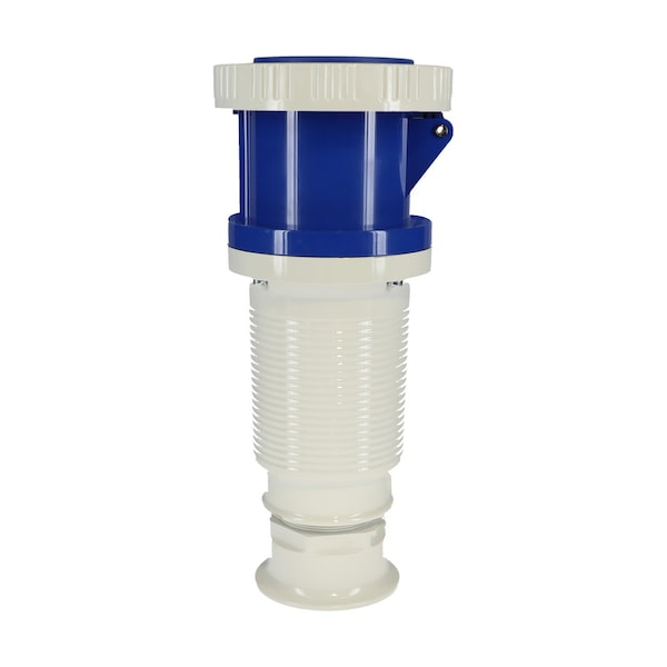 Walther Electric 379306 Pin and Sleeve Coupler 125A 3 Wire 230 VAC 6Hr IP67 Watertight Blue is interchangeable with other IEC 60309 industrial grade 3125C6W electrical connectors.
