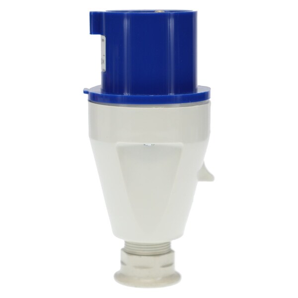 Walther Electric 231306 Pin and Sleeve Plug 30A 3 Wire 250 VAC 6Hr IP44 Splashproof Blue is interchangeable with other IEC 60309 industrial grade 330P6 or 332P6 electrical plugs.