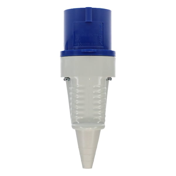 Walther Electric 210306 Pin and Sleeve Plug 16/20A 3 Wire 230/250 VAC 6hr IP44 Splashproof Blue is interchangeable with other IEC 60309 industrial grade 316P6 or 320P6 electrical plugs.