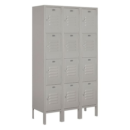 4 Tier Vented Locker, 36"Wx66"Hx15"D, 12 Door, Gray, Unassembled